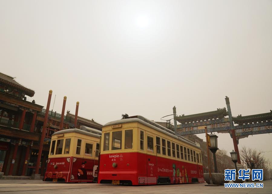3月15日拍攝的北京前門商業(yè)街。當(dāng)日,我國(guó)北方多地出現(xiàn)沙塵天氣。新華社記者 張晨霖 攝