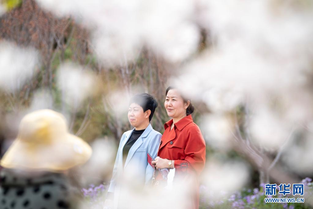 4月7日,游人在山西省太原市玉泉山城郊森林公園拍照留念。近日,山西省太原市玉泉山城郊森林公園栽植的近25萬(wàn)株各類(lèi)櫻花競(jìng)相盛開(kāi),吸引不少市民前來(lái)觀賞。新華社記者 楊晨光攝