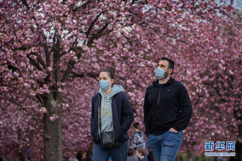 4月20日,人們在法國巴黎近郊的國璽公園欣賞櫻花。