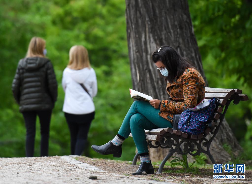 4月15日,一名女子在西班牙馬德里一個(gè)公園內(nèi)讀書(shū)。