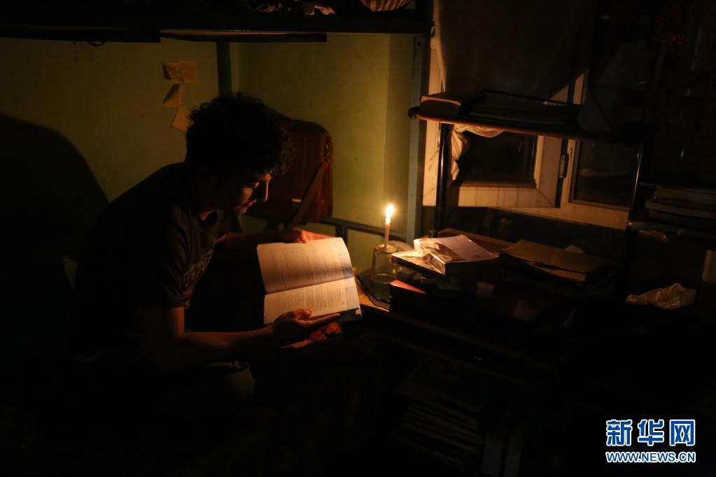 這是2019年9月17日,在阿富汗首都喀布爾,一名學(xué)生在宿舍里點(diǎn)起蠟燭看書(shū)。