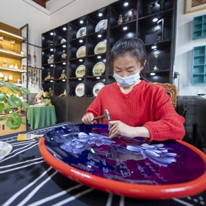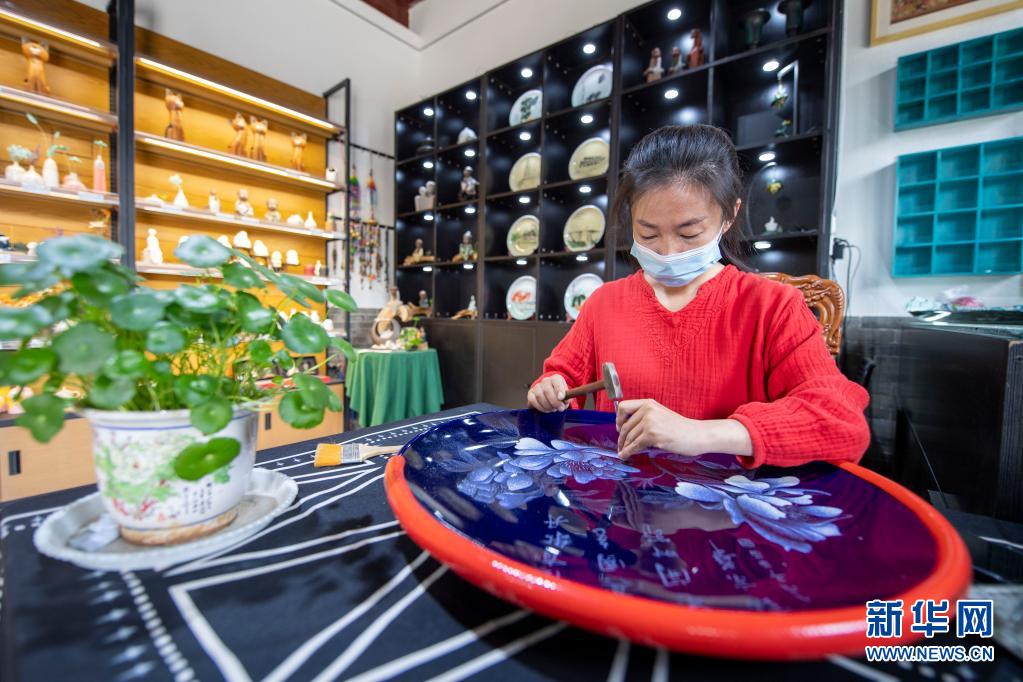 5月4日,山西省級非遺傳統(tǒng)刻瓷項目傳承人苗振潔在太原古縣城內(nèi)刻瓷。