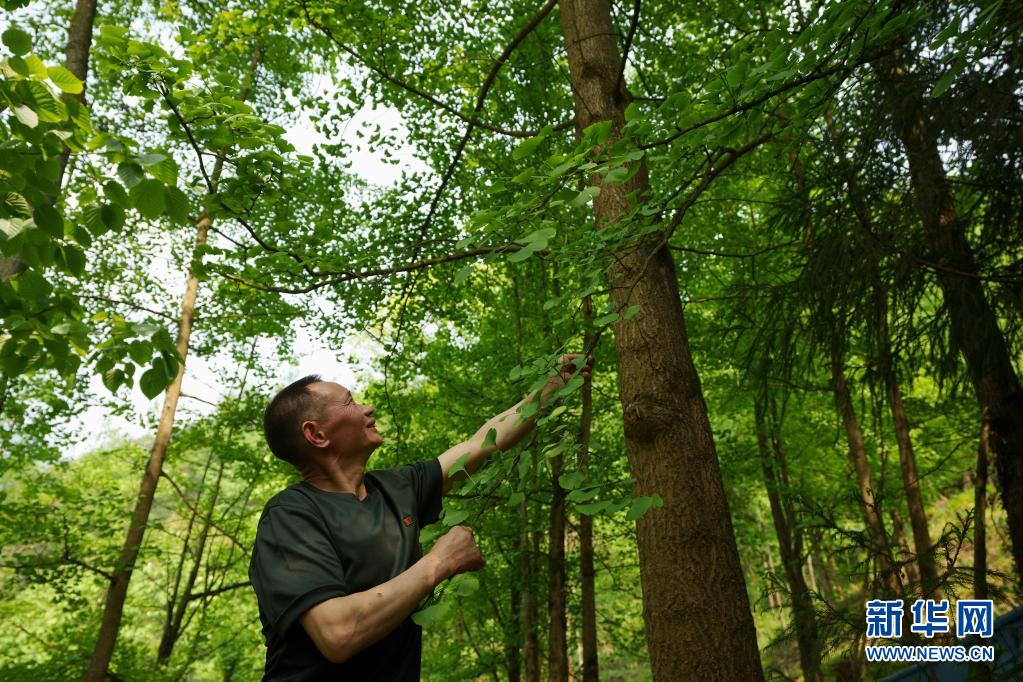 5月4日,林興聰在自家林地里看著茁壯成長(zhǎng)的銀杏樹(shù)。 新華社記者 江宏景 攝