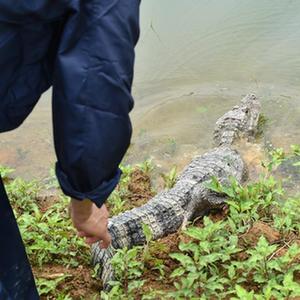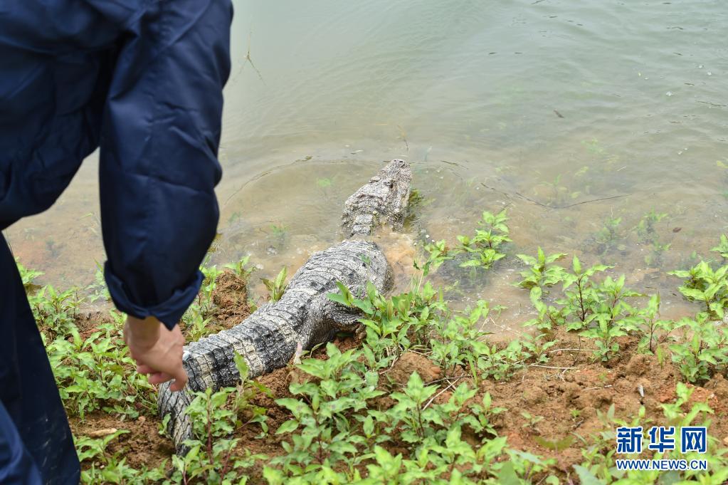 5月13日,工作人員放歸揚(yáng)子鱷。