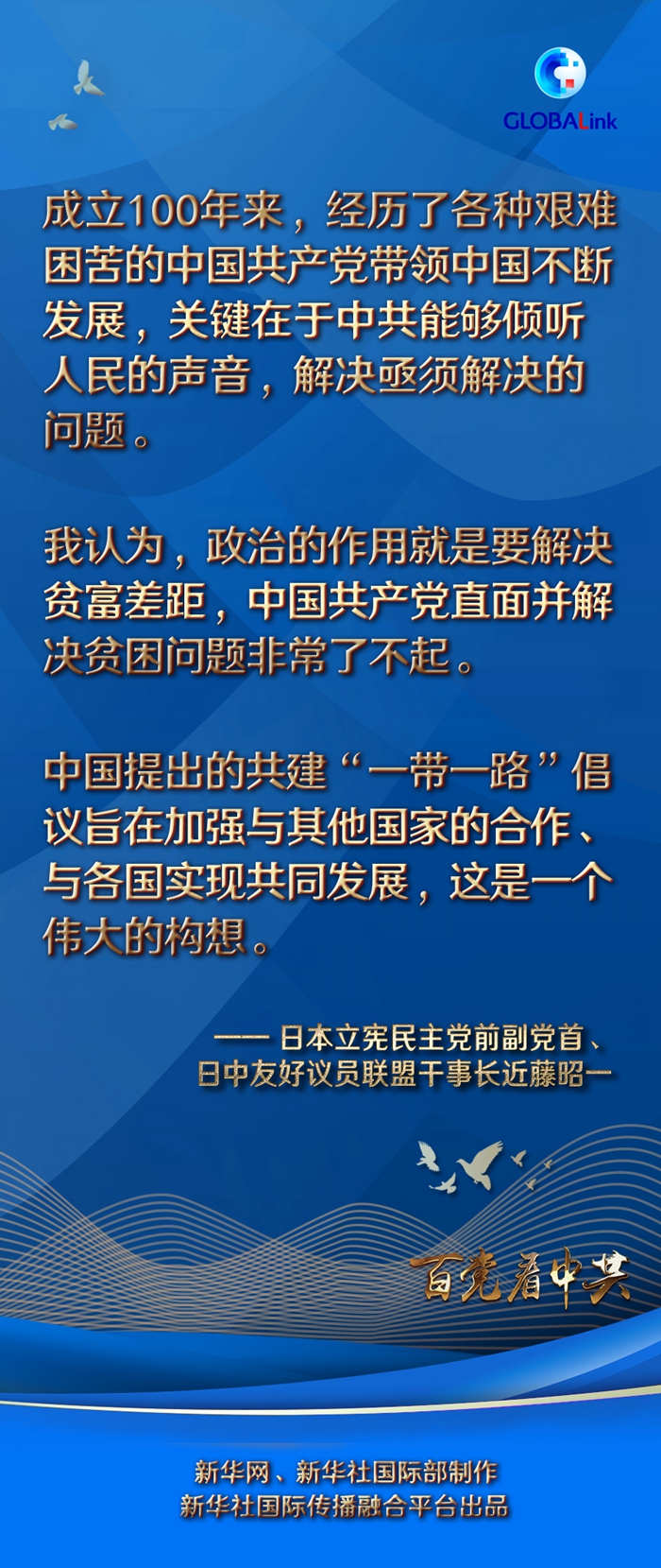 “在這100年中,中國(guó)共產(chǎn)黨黨員付出了巨大努力,取得了豐碩成果。”近藤表示。