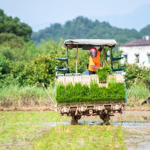 6月26日,湖南瀏陽(yáng)龍伏鎮(zhèn)新開(kāi)村村民駕駛插秧機(jī)在田間插秧。