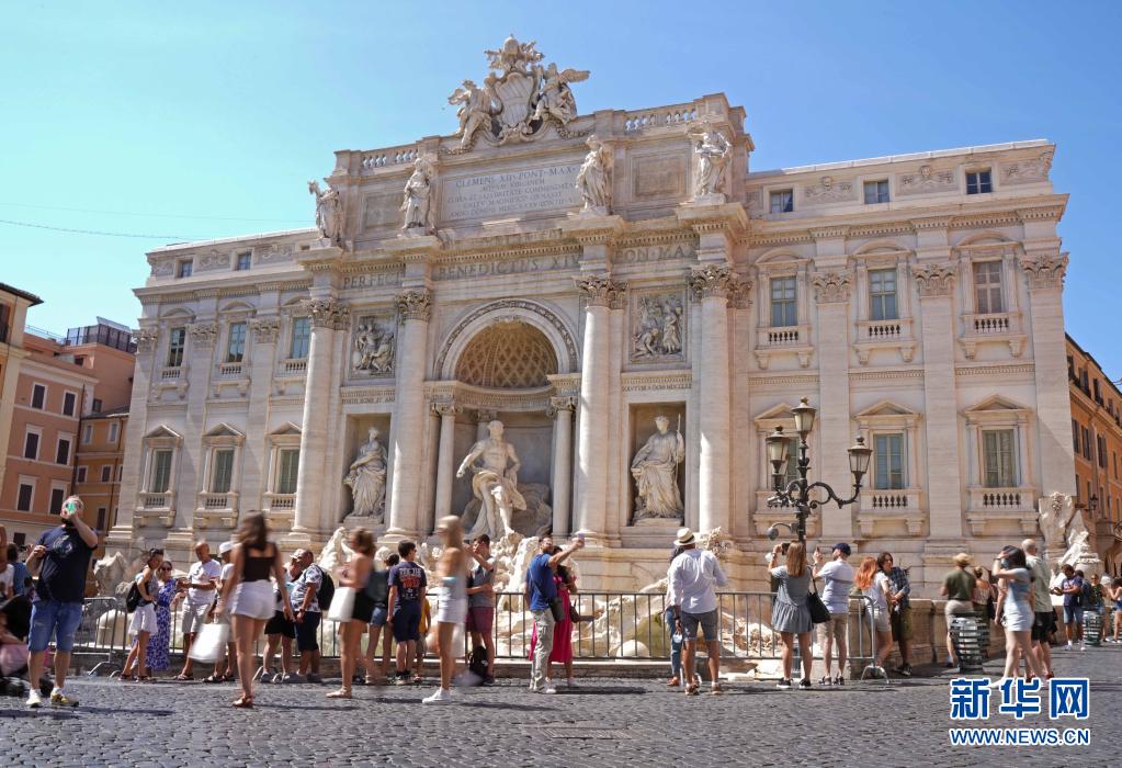 7月11日,人們?cè)谝獯罄_馬的許愿池前參觀拍照。