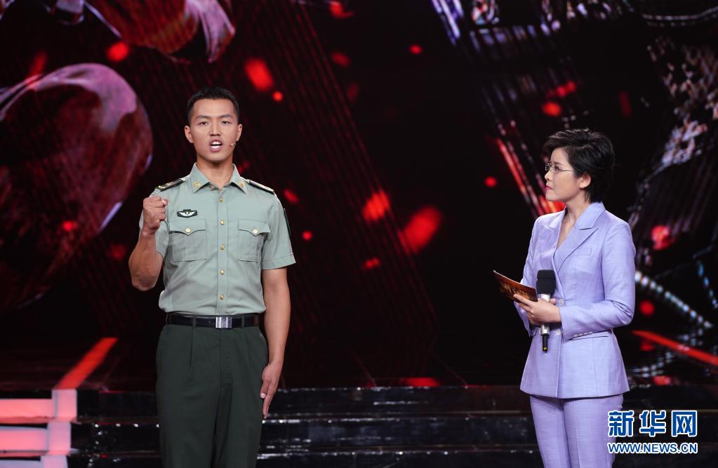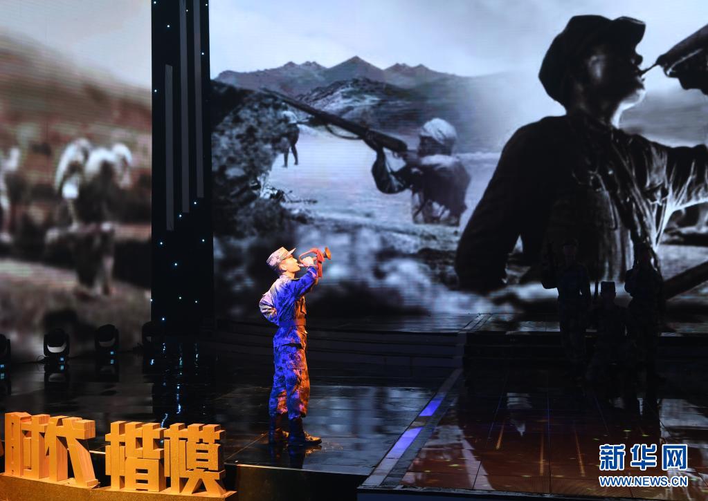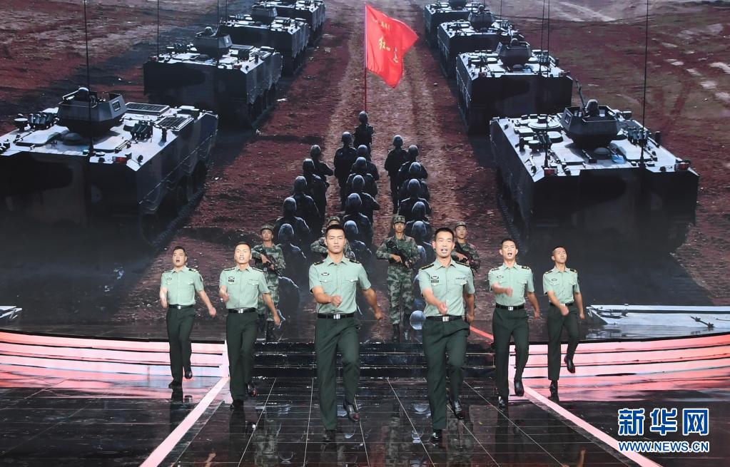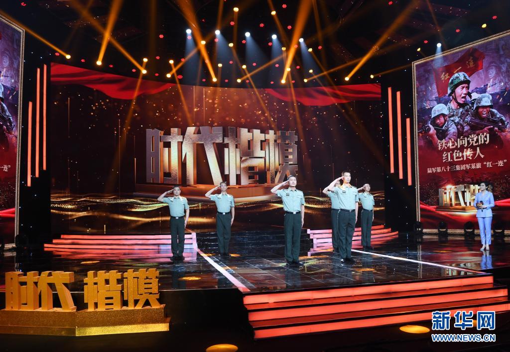 在“時代楷?!卑l(fā)布儀式上,陸軍第八十三集團(tuán)軍某旅“紅一連”官兵代表表演節(jié)目《紅色堡壘》(7月23日攝)。新華社記者 張永進(jìn) 攝