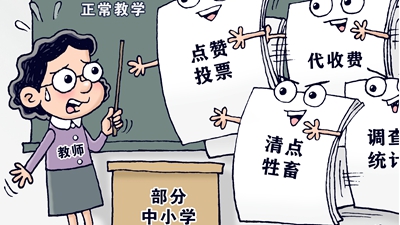 人數(shù)不夠教師來湊。主責(zé)主業(yè)成“副業(yè)”,工作負(fù)擔(dān)蹭蹭漲,讓教師苦不堪言。教師的時(shí)間都用在“副業(yè)”上了,哪還有時(shí)間教書育人?為教師減負(fù),要減掉的正是那些教師不應(yīng)承擔(dān)、與教育教學(xué)無關(guān)的事項(xiàng),既要“治標(biāo)”,也要“治本”。