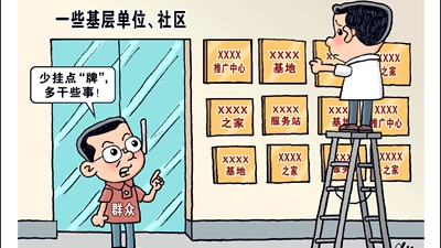 開展達(dá)標(biāo)評(píng)比、創(chuàng)建示范活動(dòng),本是以標(biāo)兵引領(lǐng)推動(dòng)工作落實(shí)的有效之舉。但是一些部門卻將發(fā)牌視為“工作下沉”的象征,認(rèn)為“掛牌即落實(shí)”,甚至將掛牌數(shù)量與考核排名掛鉤,大搞“繁瑣哲學(xué)”,動(dòng)輒開發(fā)出上百項(xiàng)指標(biāo),以此下移壓力。部分社會(huì)組織甚至以“達(dá)標(biāo)創(chuàng)建”之名創(chuàng)收牟利,造成負(fù)面影響。