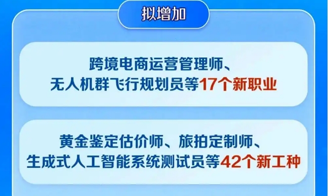 近日,人社部宣布擬新增跨境電商運(yùn)營管理師、無人機(jī)群飛行規(guī)劃員等17個(gè)新職業(yè),以及生成式人工智能系統(tǒng)測試員、睡眠健康管理師等42個(gè)新工種。這些新職業(yè)、新工種既是產(chǎn)業(yè)變革的縮影,也是對社會(huì)高質(zhì)量發(fā)展需求的生動(dòng)回應(yīng)。新職業(yè)持續(xù)涌現(xiàn),開啟了時(shí)代創(chuàng)造的無限可能。面對職業(yè)選擇,不少年輕人主動(dòng)擁抱變化,抓住新賽道。