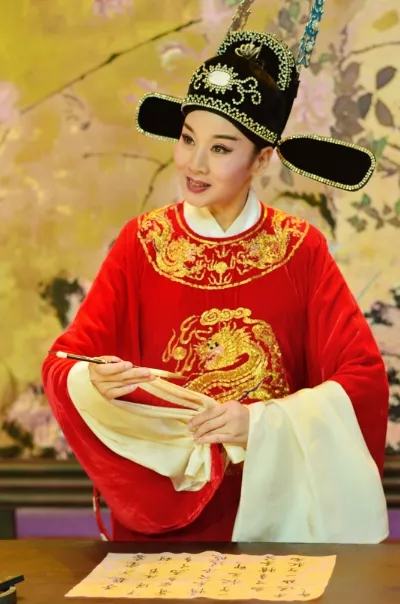 提到黃梅戲,經(jīng)典名劇《女駙馬》是不可不提的重要作品。這部劇是黃梅戲最為著名的代表之一,塑造劇中“馮素珍”這個(gè)角色,需要表演者具備極強(qiáng)的專業(yè)功底與豐富的表演經(jīng)驗(yàn)。尤其是女扮男裝中狀元的這一場(chǎng)戲,演員要時(shí)刻注意心境的轉(zhuǎn)換,旦行與生行的靈活切換,采用戲曲程式化的動(dòng)作把人物內(nèi)心戲進(jìn)行外化表現(xiàn),讓觀眾跟隨演員的情緒而動(dòng)。