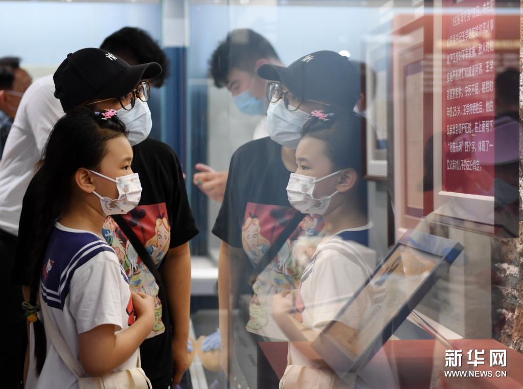 7月7日,觀眾在中國人民抗日戰(zhàn)爭紀(jì)念館參觀“中流砥柱——中國共產(chǎn)黨抗戰(zhàn)文物專題展”。新華社記者 張晨霖 攝