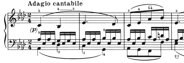 古典主義早期,“連線”通常都是短小的,除了音樂(lè)風(fēng)格,很大原因是由于樂(lè)器的限制,當(dāng)時(shí)的鋼琴體積不大、音域不寬、甚至琴鍵都要比現(xiàn)在的短和窄,所以當(dāng)時(shí)鋼琴家們演奏時(shí)身體幅度不能過(guò)大,為了適應(yīng)小窄的琴鍵,出現(xiàn)了許多依靠手腕的彈奏方法。