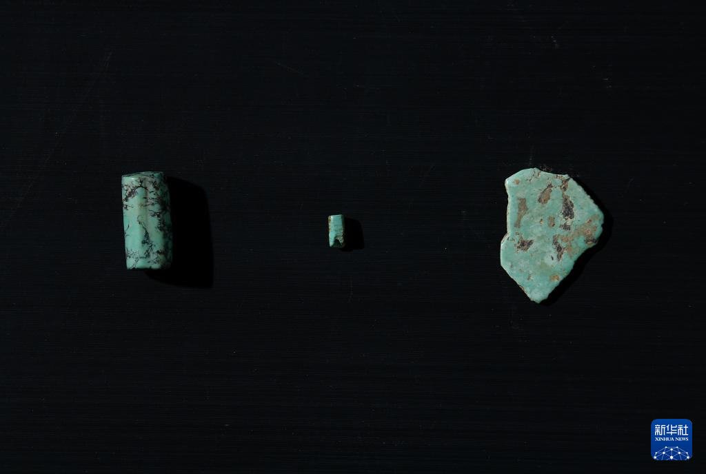 甘肃庆阳市南佐新石器时代遗址出土的绿松石管与绿松石片(2022年8月25日摄)。