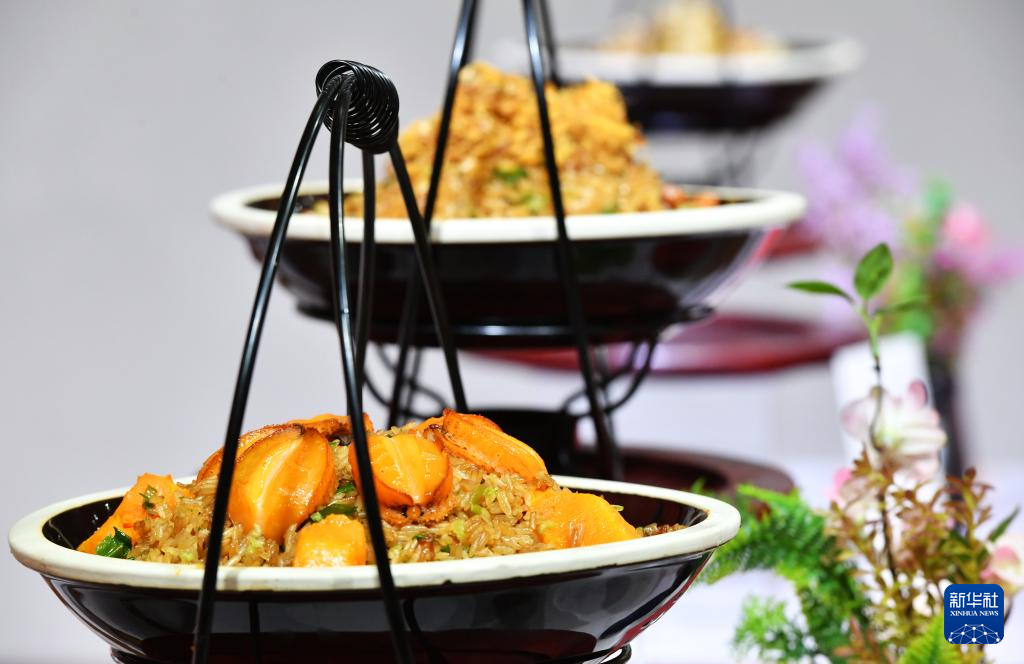 2月22日拍摄的“宋元海丝宴”中的南瓜鲍鱼饭。