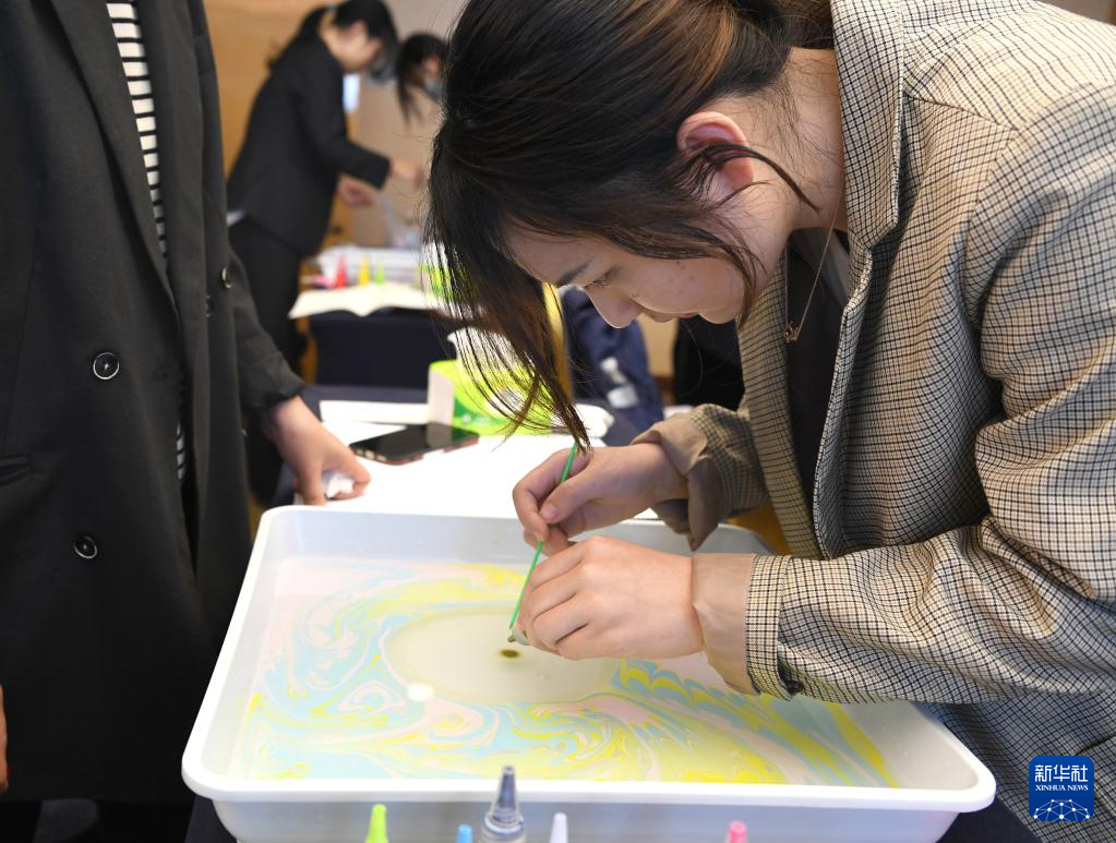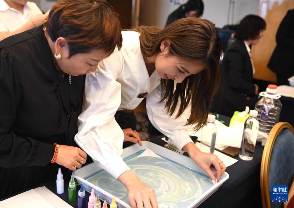 3月4日,中建三局一公司广西分公司在广西南宁市举办“三八”国际妇女节主题活动,数十名奋战在建筑工程一线的女员工在老师的带领下学习水拓画技艺,以独特方式迎接自己的节日。