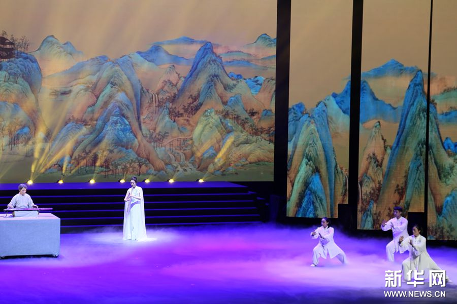 3月23日,“2023非遗品牌大会”在广州市开幕。当晚,“非遗之夜”展演在广州市文化馆新馆群星剧场上演。此节目为岭南古琴、萧与陈氏太极拳合作《碧涧流泉》。新华网 邢贺扬摄pagebreak