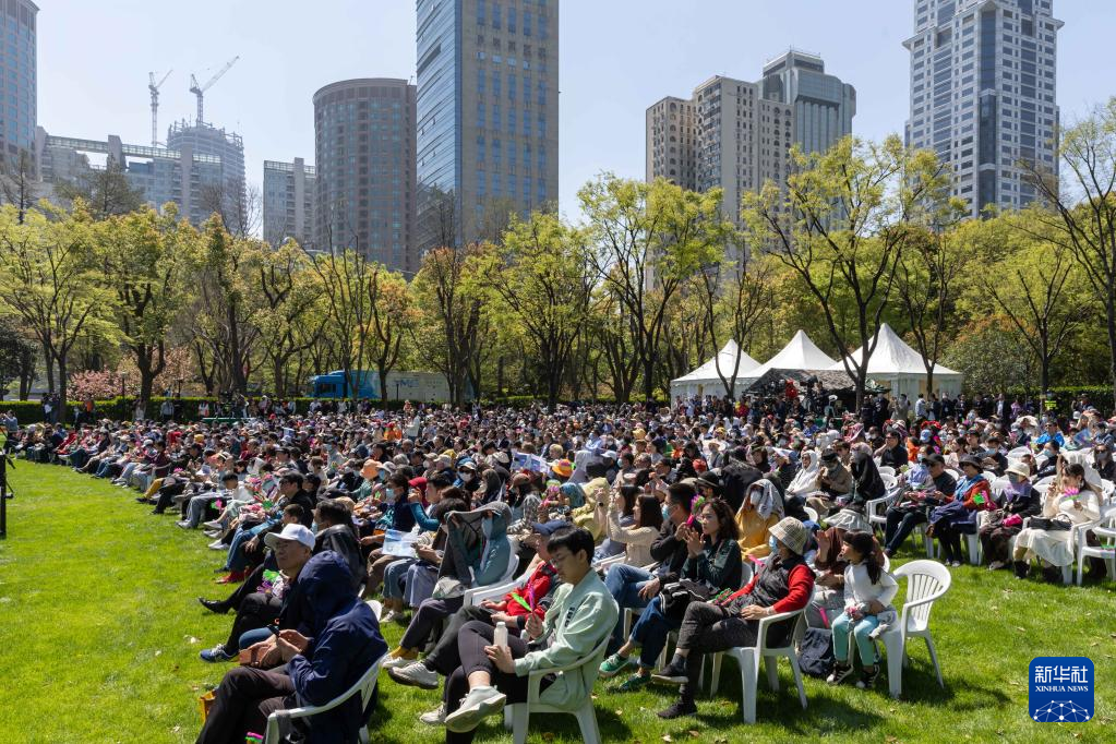 4月2日,人们在上海城市草坪音乐广场观赏音乐节闭幕展演。