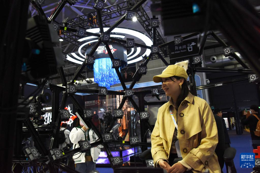 4月6日,参观者在展会上体验数字微表情捕捉技术。