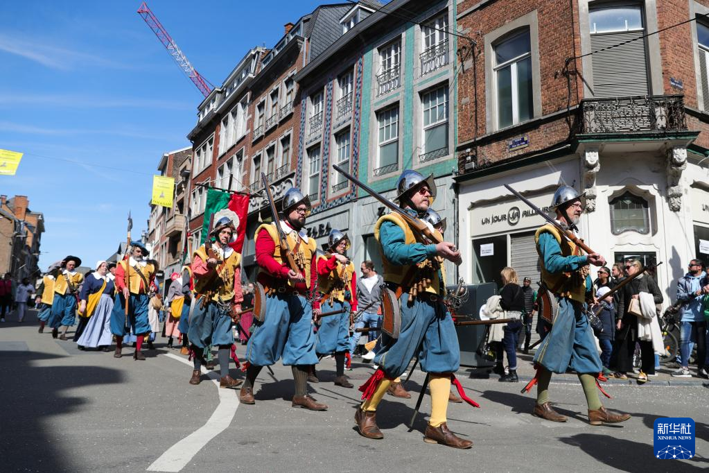 4月15日,身着古装的演员在比利时那慕尔市传统民俗日活动上表演。