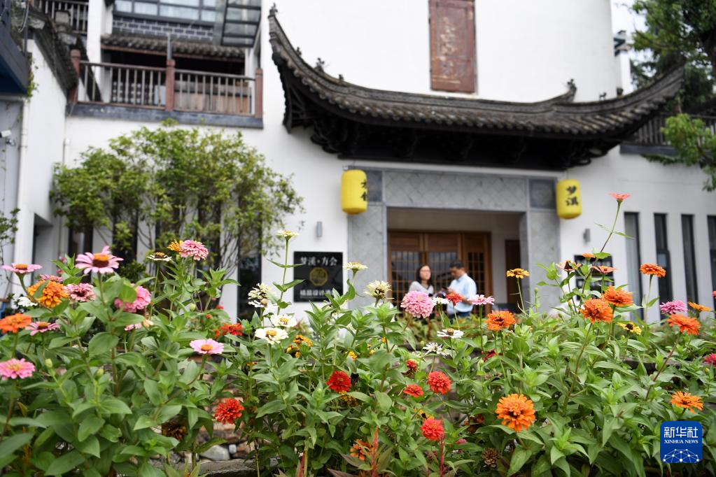 2019年8月29日,游客在安徽省黄山市徽州区西溪南镇西溪南村的民宿外驻足。新华社记者 刘军喜 摄