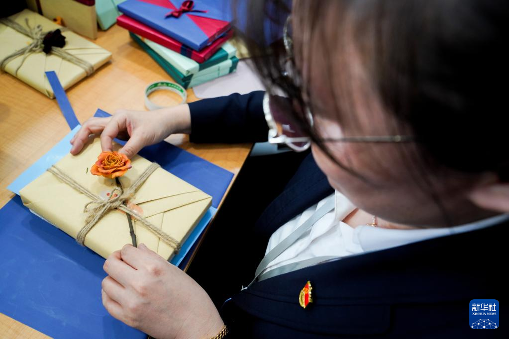 4月12日,工作人员精心制作“换书大集”上的新书盲盒。