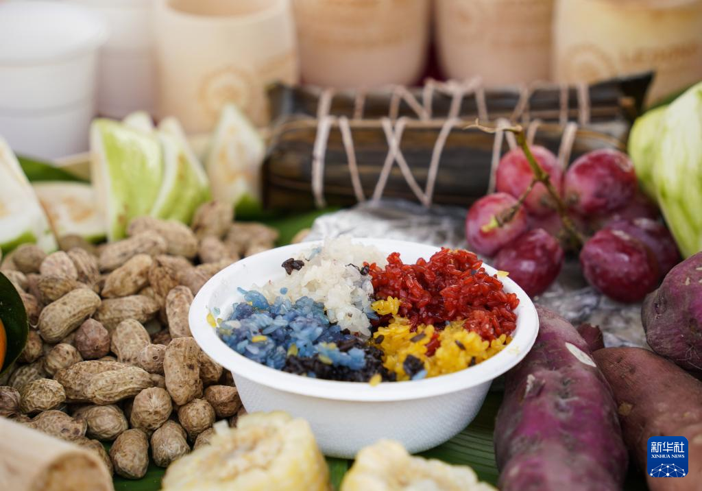 这是4月23日在海南省乐东黎族自治县拍摄的苗族五色饭。