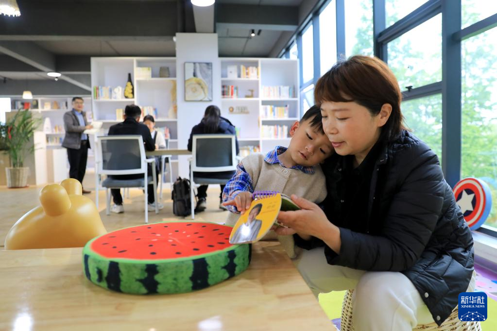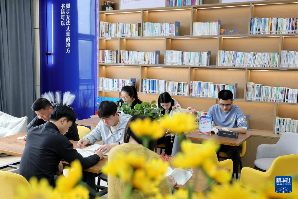 4月24日,读者在山东省临沂市临沭县城市书房阅读。