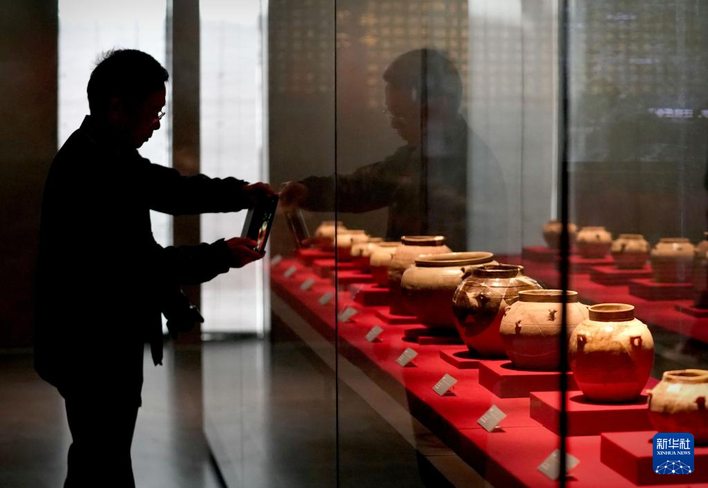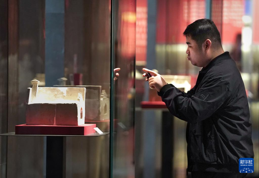 4月27日,参观者在曹操高陵遗址博物馆内拍摄展品。