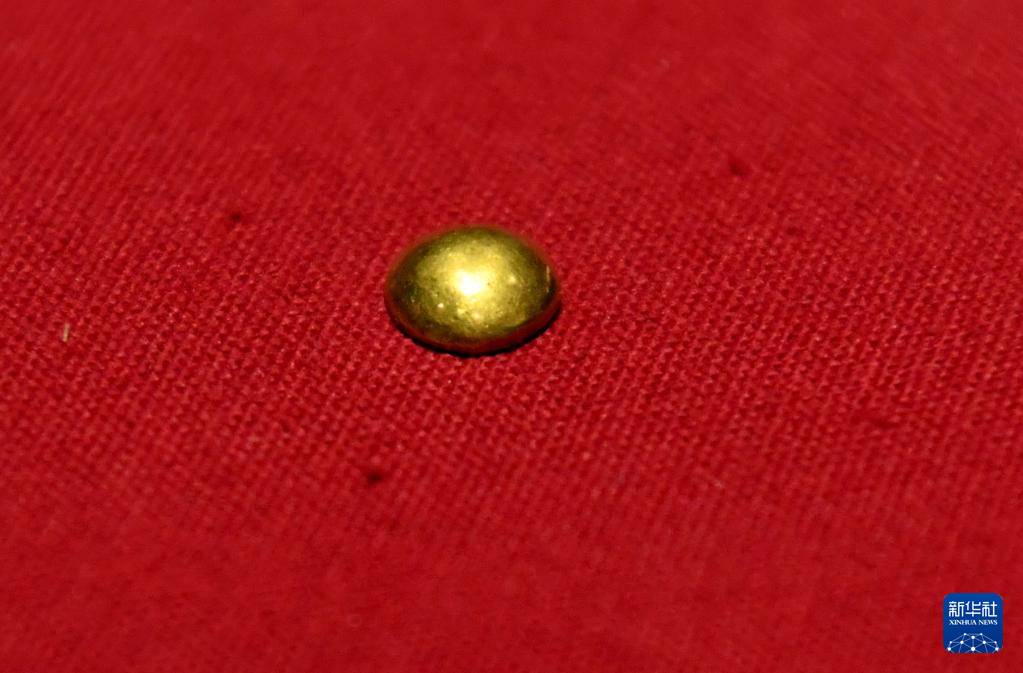 这是曹操高陵遗址博物馆内展出的金纽扣(4月22日摄)。