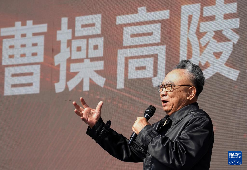 4月27日,演员鲍国安在曹操高陵遗址博物馆开馆仪式上朗诵。
