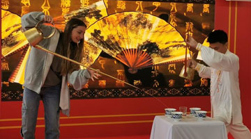 4月29日,在北京保利剧院,演员在表演音乐剧《拉齐尼·巴依卡》。