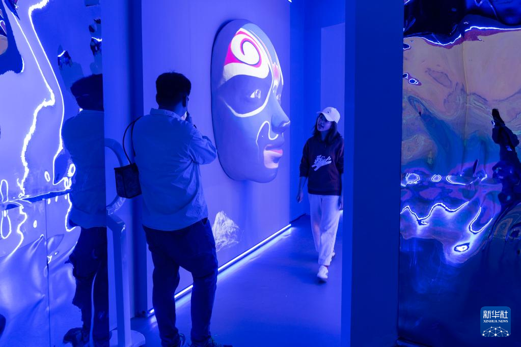 5月7日,在哈尔滨国际会展体育中心,观众在首届东北亚文化艺术创意设计博览会上参观拍照。