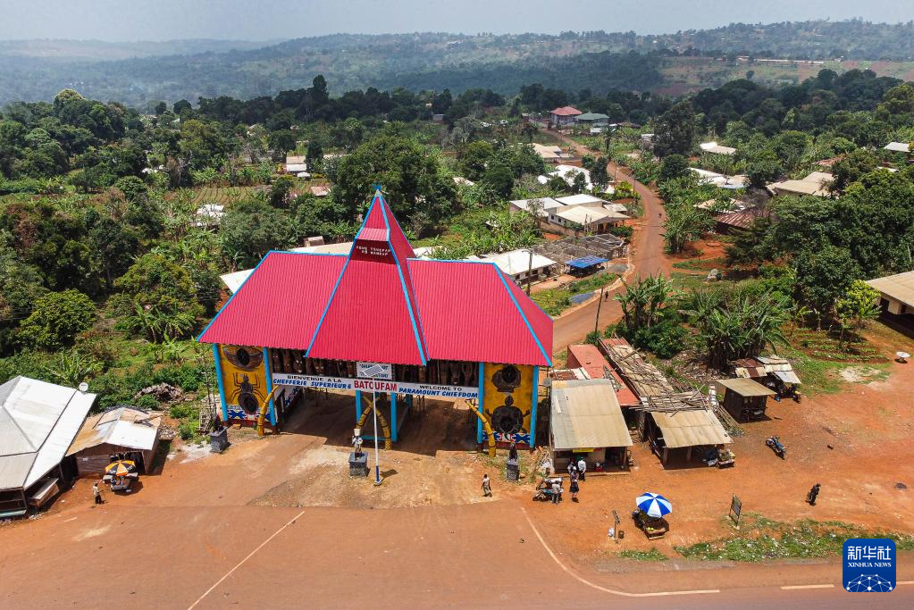这是4月13日在喀麦隆西部大区拍摄的巴图方酋邦的入口(无人机照片)。