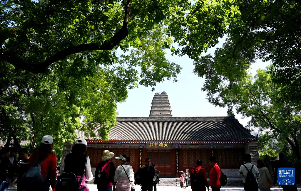 游客在西安荐福寺内参观游览(5月8日摄)。