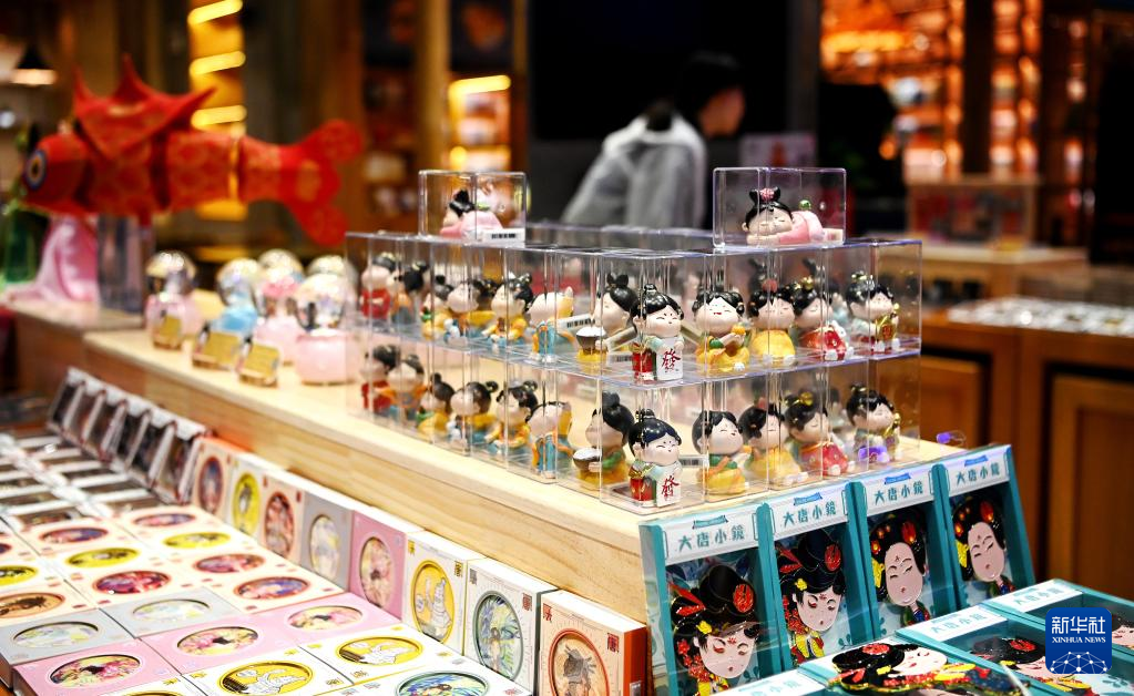 西安华清宫景区内的唐风文创产品(5月5日摄)。