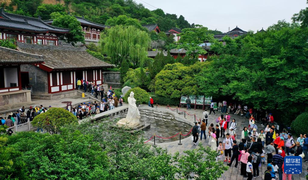 游客在西安华清宫景区星辰汤参观游览(5月5日摄)。