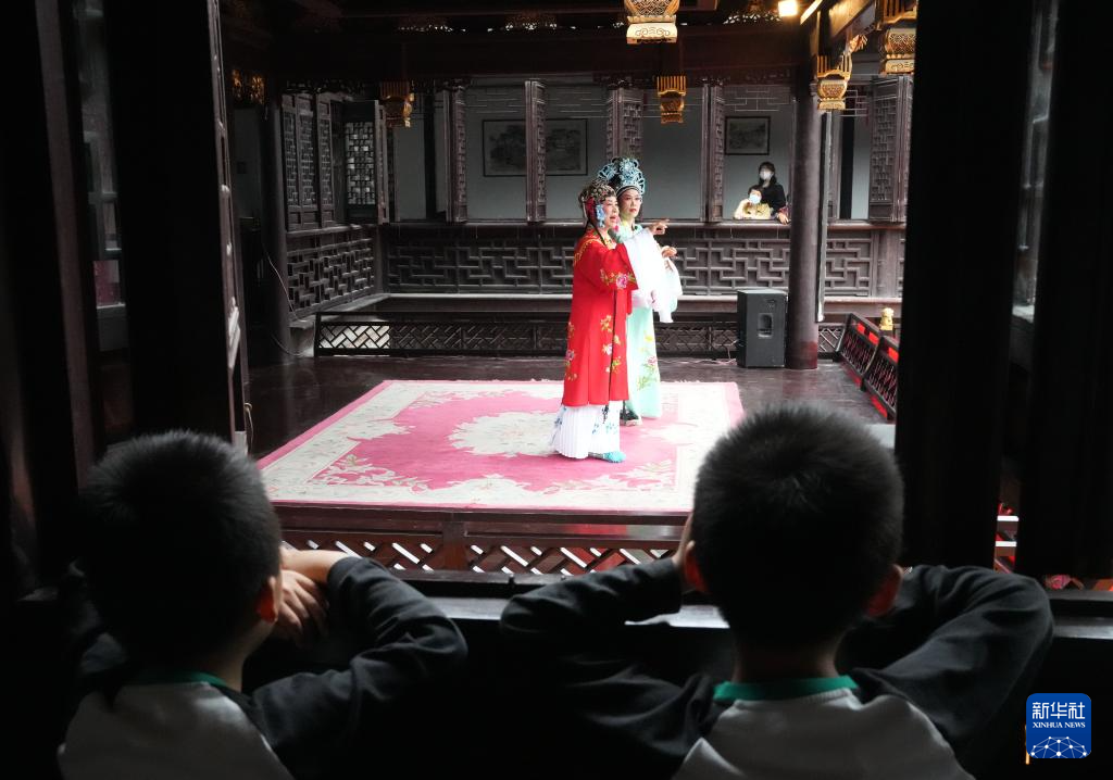 5月21日,在盛泽镇先蚕祠,演员在舞台上演出。