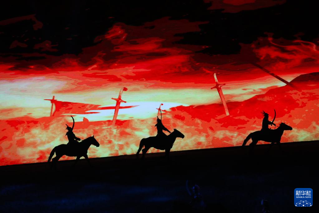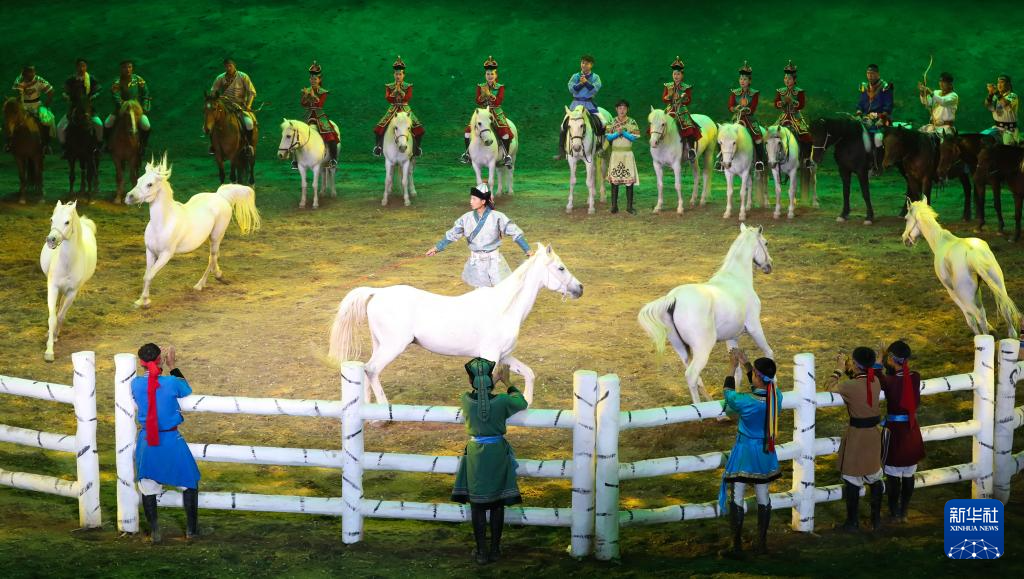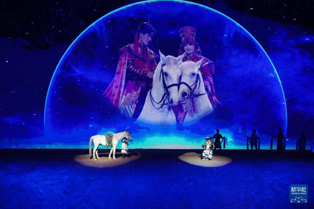 当日,由内蒙古民族艺术剧院出品的2023年大型马舞剧《千古马颂》在呼和浩特上演。该剧以马术表演为主,综合运用了舞蹈、器乐、杂技等艺术元素,融合了现代高科技舞台技术,以全新艺术形式生动演绎了人与马相遇、相识、相伴、不离不弃、生死与共的情感历程,体现了人、马与自然和谐共存的精神。