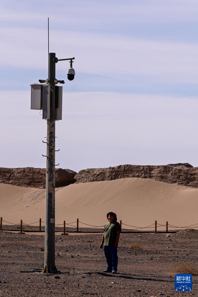 6月2日,额济纳旗文物保护中心工作人员在黑城遗址察看文保监控设备工作情况。