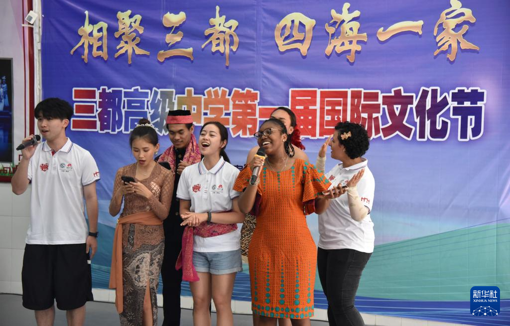 6月5日,来华留学生在三都高级中学第一届国际文化节上演唱歌曲。