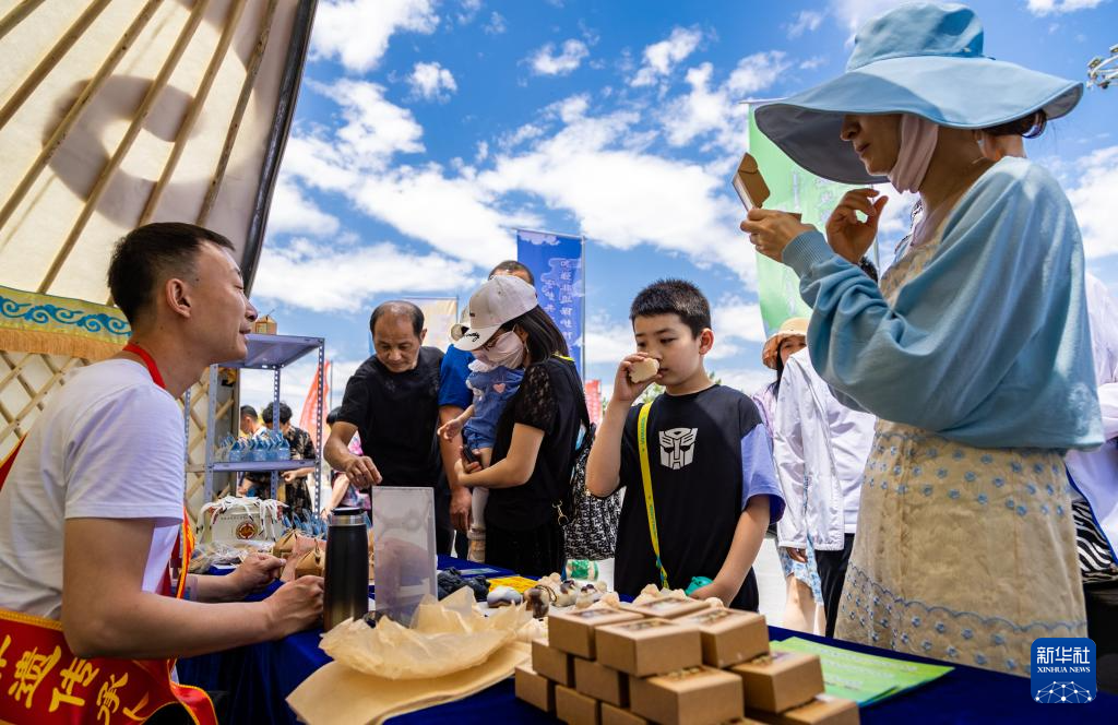 6月10日,游客在呼和浩特市玉泉区大召历史文化广场“内蒙古非遗集市自治区主场活动”上选购非遗文创产品“传统羊脂皂”。