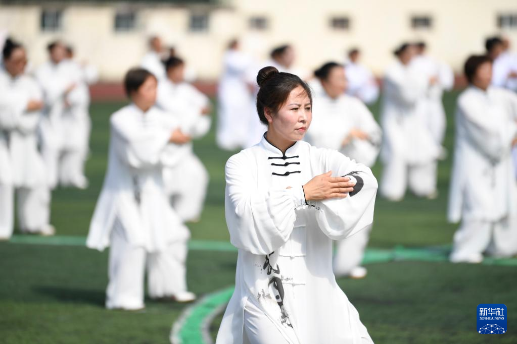 6月10日,在贵州省遵义市余庆县体育广场,太极拳爱好者在展示太极拳。