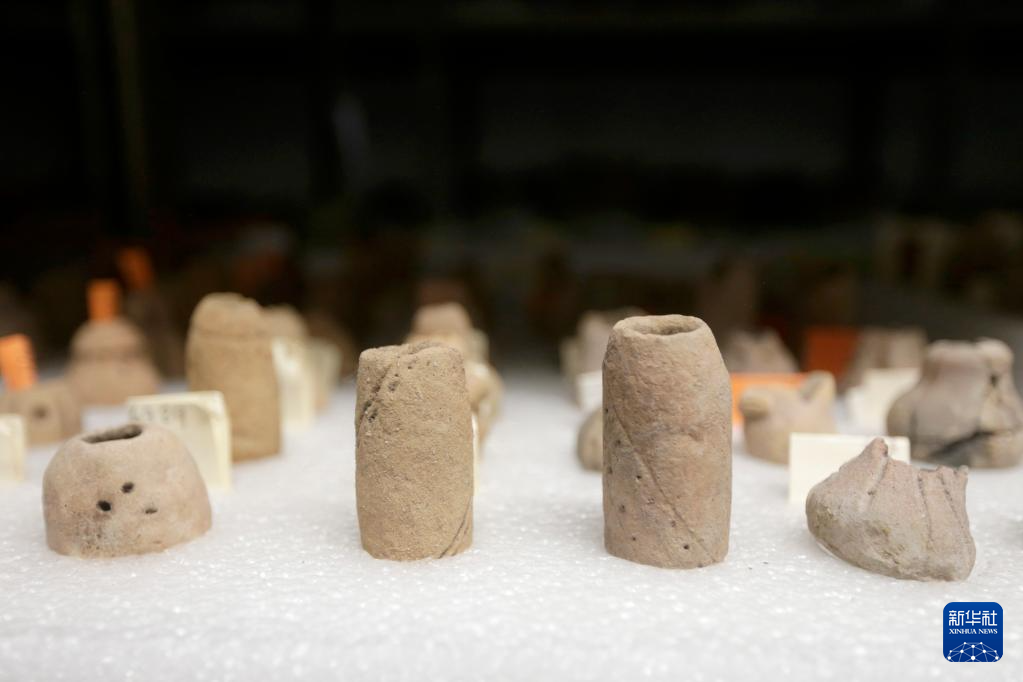 这是6月8日在洪都拉斯科潘玛雅遗址国际考古队仓库内拍摄的由中洪联合考古队发掘出的陶器文物。新华社发(卢西奥·塔沃拉摄)