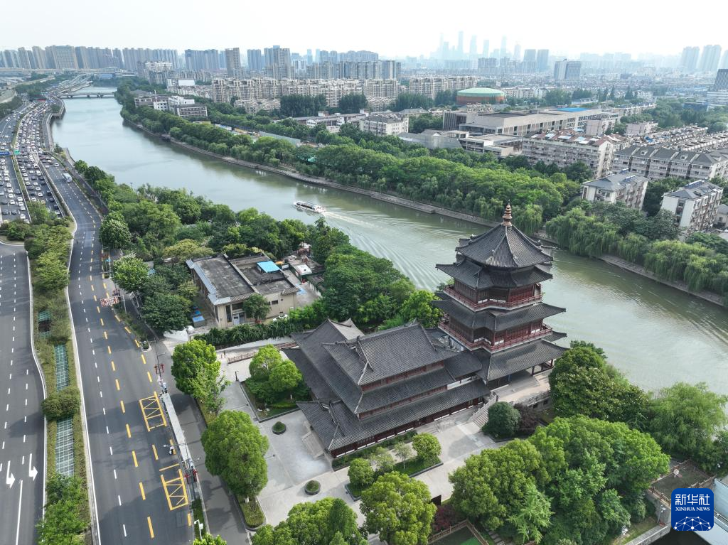 船只行驶在南京赏心亭旁的秦淮河上(6月10日摄,无人机照片)。