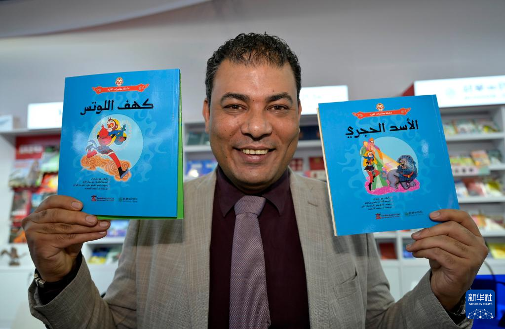 6月16日,在北京举行的第29届北京国际图书博览会上,“美猴王系列”丛书(阿文国际版)出版方、埃及希克迈特文化产业集团总裁艾哈迈德·赛义德展示丛书。
