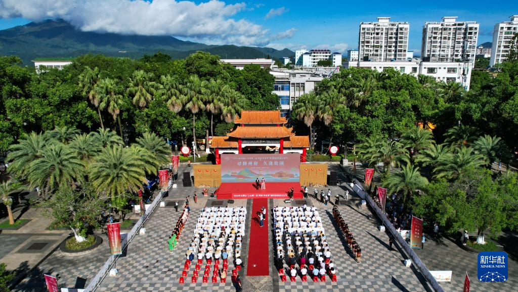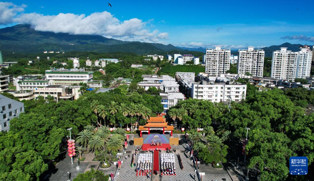 这是7月8日拍摄的五指山“上山爽一夏 故园·毕业季”暨州府故园文化节启动仪式现场(无人机照片)。