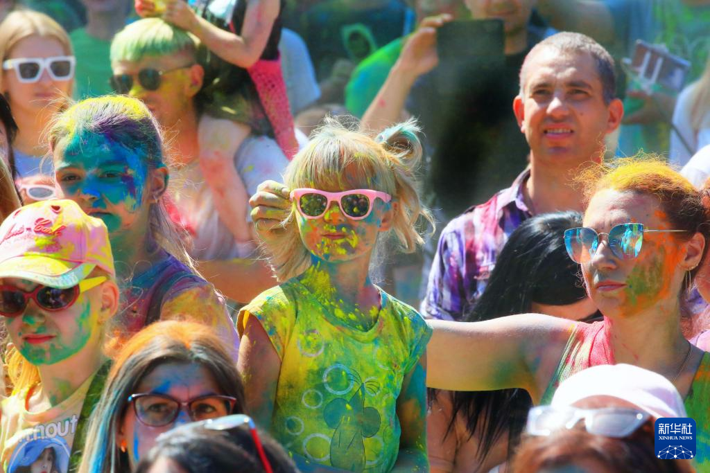 当天,第32届“斯拉夫巴扎”国际艺术节附属活动色彩节在白俄罗斯维捷布斯克举办,吸引众多年轻人参加。