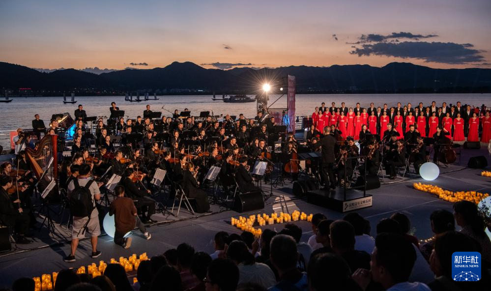 伴着晚霞,第七届聂耳音乐周昆明分会场开幕式在滇池畔举行(7月17日摄)。